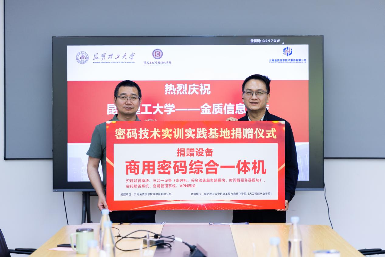 发言中,校方代表对校友及企业的慷慨捐赠与深度参与表示衷心感谢。捐赠不仅是对学院硬件与资源的直接支持,更是对母校育人理念的认同与学弟学妹成长的关怀。此次合作将聚焦两大核心方向:一是共同研究“AI赋能的密码技术与可信空间构建”,旨在突破数据安全流通与可信协同的技术瓶颈,培养高端复合型人才;二是全力推动人工智能技术在网络安全、密码技术领域的深度创新与应用。基地将构建长期稳定的校企合作实践教学与科研平台,通过实战化演练提升师生在密码应用、安全评估、攻防实践等方面的核心能力,并致力于成为服务区域网络安全产业发展、贡献“昆工智慧”与产业力量的重要创新平台,为筑牢国家网络安全屏障注入新的活力。