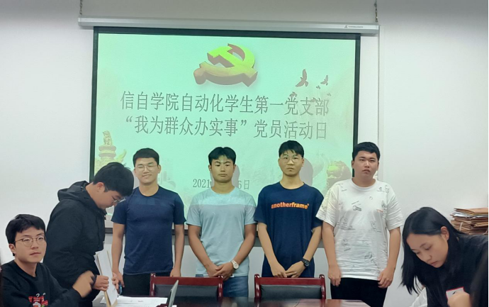 为持续推动党史学习教育走深走实,更好地将党史学习教育成果转化为工作实践,2021年9月26日,自动化学生第一党支部在信自220会议室开展以“我为群众办实事”为主题的党日活动交流分享会。本次活动由支部书记孟兴林同志主持,全体党员参加。