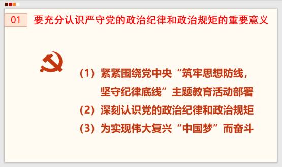 首先,进行的是学习党纪国法。陈喆同志强调没有纪律和规矩,遵规执纪不严,党就没有凝聚力、感召力和战斗力,就会失去先进性。作为共产党人,我们要懂法守法,更要以身作则,为身边的同学、同志提供一个好榜样、好楷模。