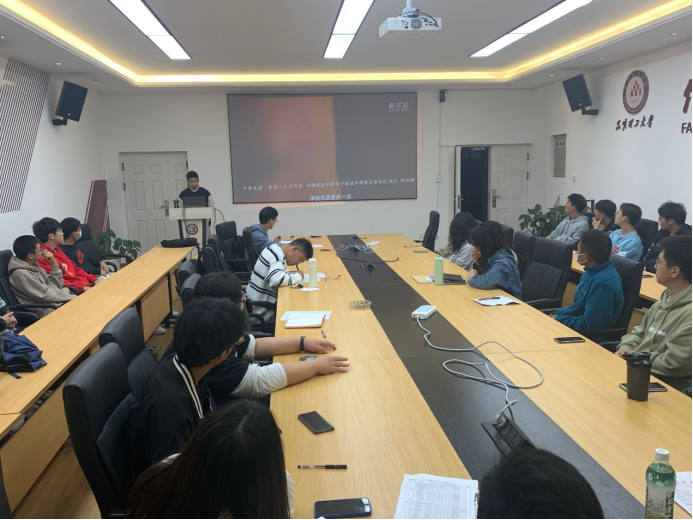 党的二十大报告中习近平总书记提出在全社会弘扬劳动精神,奋斗精神,奉献精神,创造精神,勤俭节约精神,培育时代新风新貌。自动化学生第三党支部于2022年10月27日晚19:00—21:00在信自237展开了“学榜样,做榜样”主题党日活动。详细地介绍了张桂梅同志的先进事迹,她历尽艰辛、克服困难,把1600余名大山里的女孩送进了大学,帮助她们改变了命运。张桂梅说:“我希望她们变得更强,然后把心中的我去掉百分之八十,有能力去帮助需要帮助的人”。