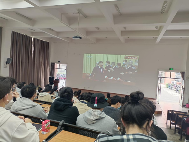 测控学生党支部同全体本科生党员一起,于信自100报告厅认真收听收看开幕会盛况。