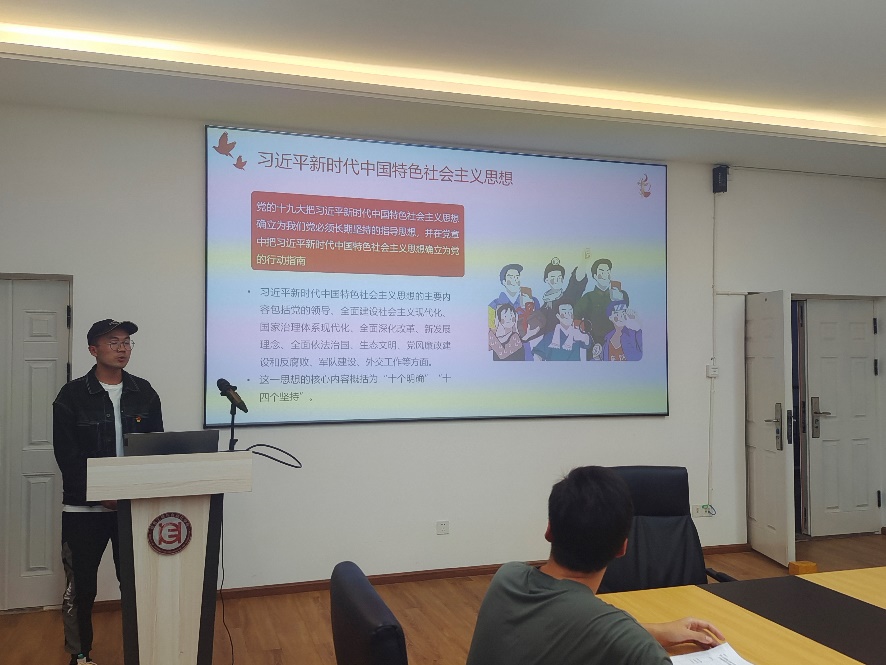 郭栩辰同志分别围绕学习贯彻习近平新时代中国特色社会主义思想主题教育的背景与目的、主题教育主要内容、主题教育的意义三个方面进行详细地解读。带领大家重温了此次主题教育的背景与目的,回顾了习近平新时代中国特色社会主义思想的核心内容“十个明确”和“十四个坚持”,让大家对习近平新时代中国特色社会主义思想有了更加深入而全面的理解。