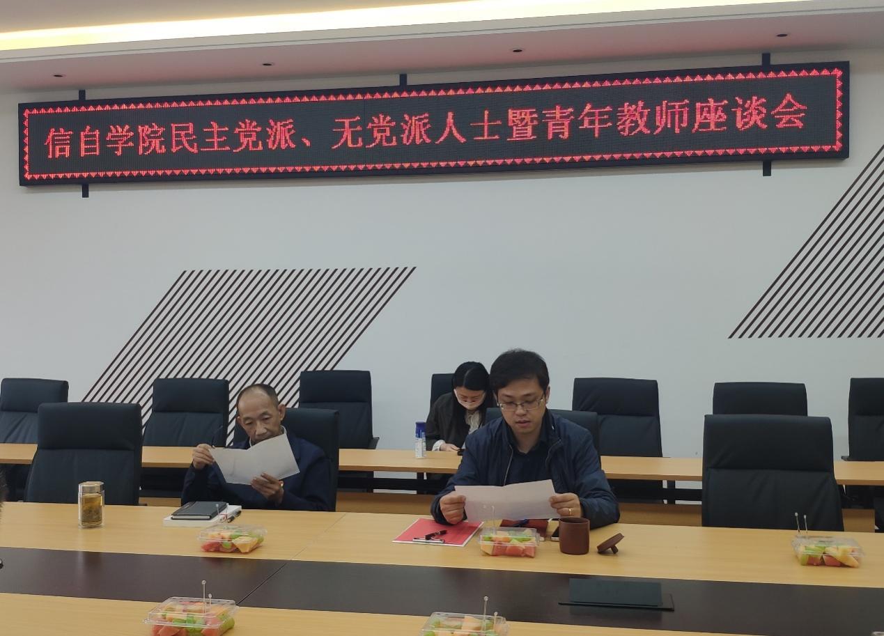 在信自楼237会议室举办民主党派、无党派人士及青年教师座谈会,征求党内外教师对于学院建设发展的意见建议。会议由信自院党委书记齐毅主持,院领导班子成员、民主党派、无党派人士及青年教师数十余人出席会议。