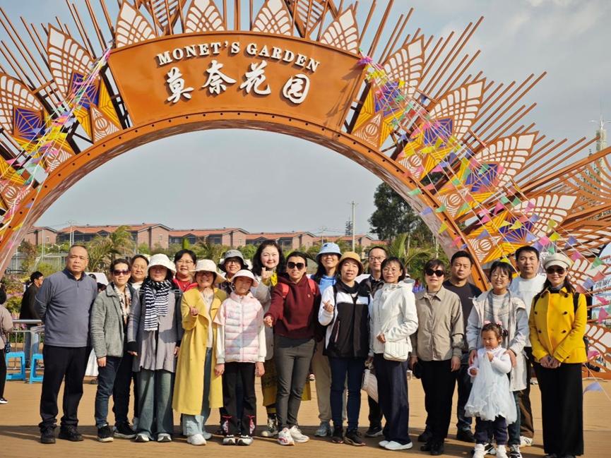 清晨,阳光明媚,春风和煦,老师们乘车来到了美丽的滇池边,首先游览了莫奈花园。花园中五彩斑斓的花卉和优雅的园林设计,让老师们仿佛置身于法国印象派大师莫奈的画作之中,感受到了艺术的魅力。大家纷纷拿起手机拍照,记录如诗如画的瞬间,用照片定格这份美好。