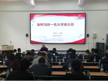 学生的就业现状做出分析;学校保卫处杨育喜处长对高校安全工作作了强调,通过播放视频、案例讲解的方式对校园实验室安全、交通安全、网络安全、意识形态安全等安全工作重点和要求作了说明;学院党委齐毅书记作了“如何做好一名大学班主任”主题讲授,齐书记结合自身工作实践与全体班主任老师谈了自己的体会,希望班主任做学生的良师益友、科学管理抓好班风建设、以就业为导向鼓励学生树立更高目标、重视学生心理疏导和安全教育工作。