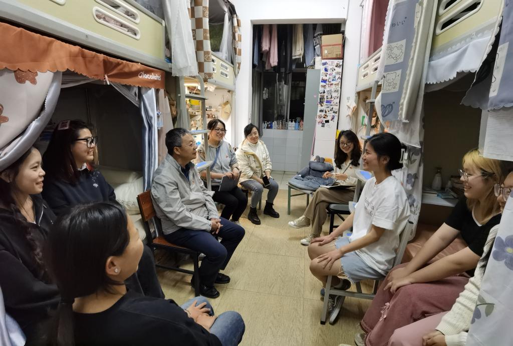 学生工作负责人及辅导员走进怡园5幢学生宿舍开展走访座谈活动。