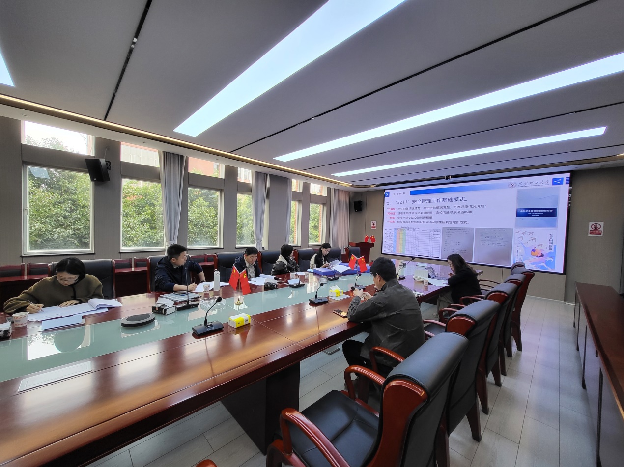 本次专项督查中,学院认真梳理了学生安全管理的各项工作内容,从学生安全工作队伍组建情况、学生安全管理风险梳理、学生安全管理工作体系介绍、上一轮督查反馈问题整改四个方面向督察组汇报了学生安全工作基本情况。督查组对学院开展的相关工作给予了充分肯定,同时对学院加强晚归寝精细化管理及细化工作台账提出了进一步的工作要求。