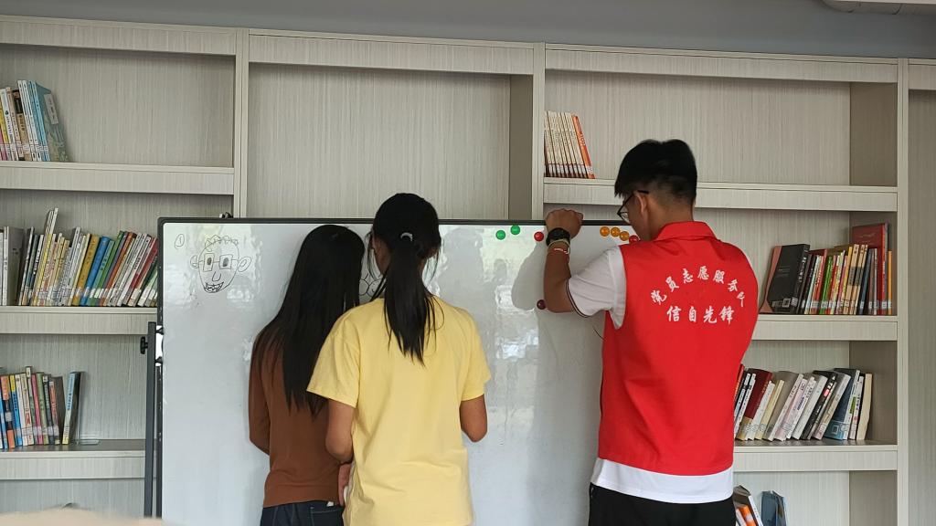 下午14点,本次志愿服务活动的最后一堂课开始,活动共开展了两个游戏。游戏过程中,面对《你画我猜》中的四字成语,绘画的小朋友们天马行空、大胆创作,猜谜的小朋友们集思广益,目达耳通,解答出一个又一个谜题。《谁是卧底》中关于“端午节”一词的形容,加深了小朋友们对端午节的理解,拿到卧底词的小朋友通过仔细分析其他小朋友的形容成功伪装自己获得胜利,本次活动也欢声笑语中结束。