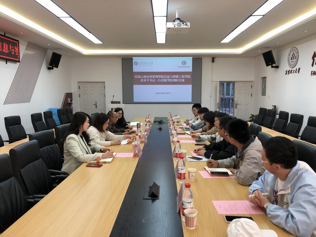 2024年4月3日上午,云南经济管理学院信息与智能工程学院武彦平书记一行莅临学院调研交流,学院党委书记齐毅、党委副书记郑婷婷及负责就业、党建工作的老师参加了交流会。
